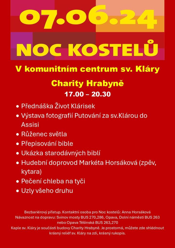 Noc kosteků - kaple sv. Kláry při Charitě Hrabyně. Otevřeno bude v čase od 17:00 - 20:30 hodin.