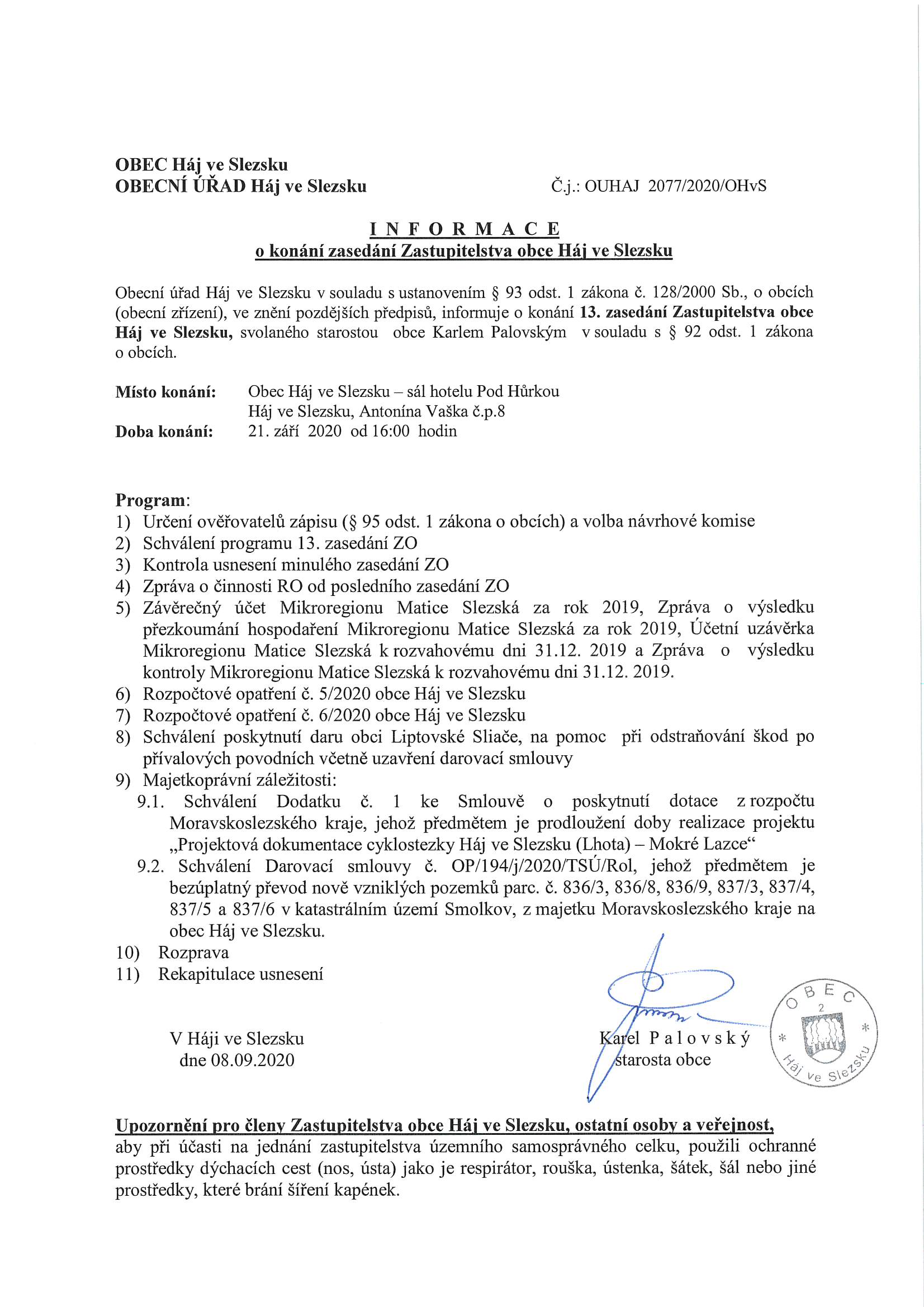 Konání zasedání Zastupitelstva : zde ke stažení