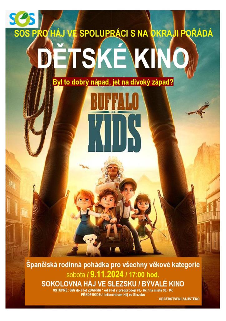 Dětské kino BUFFALO KIDS - sobota 9. 11. 2024 od 17 hodin v sokolovně v Háji ve Slezsku.
