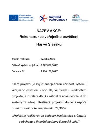 Projekt EU - Rekonstrukce veřejného osvětlení